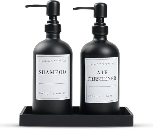 Ahill Soap Dispenser Set - Black Refillable Glass Bottle(2 Pack 16 Oz)